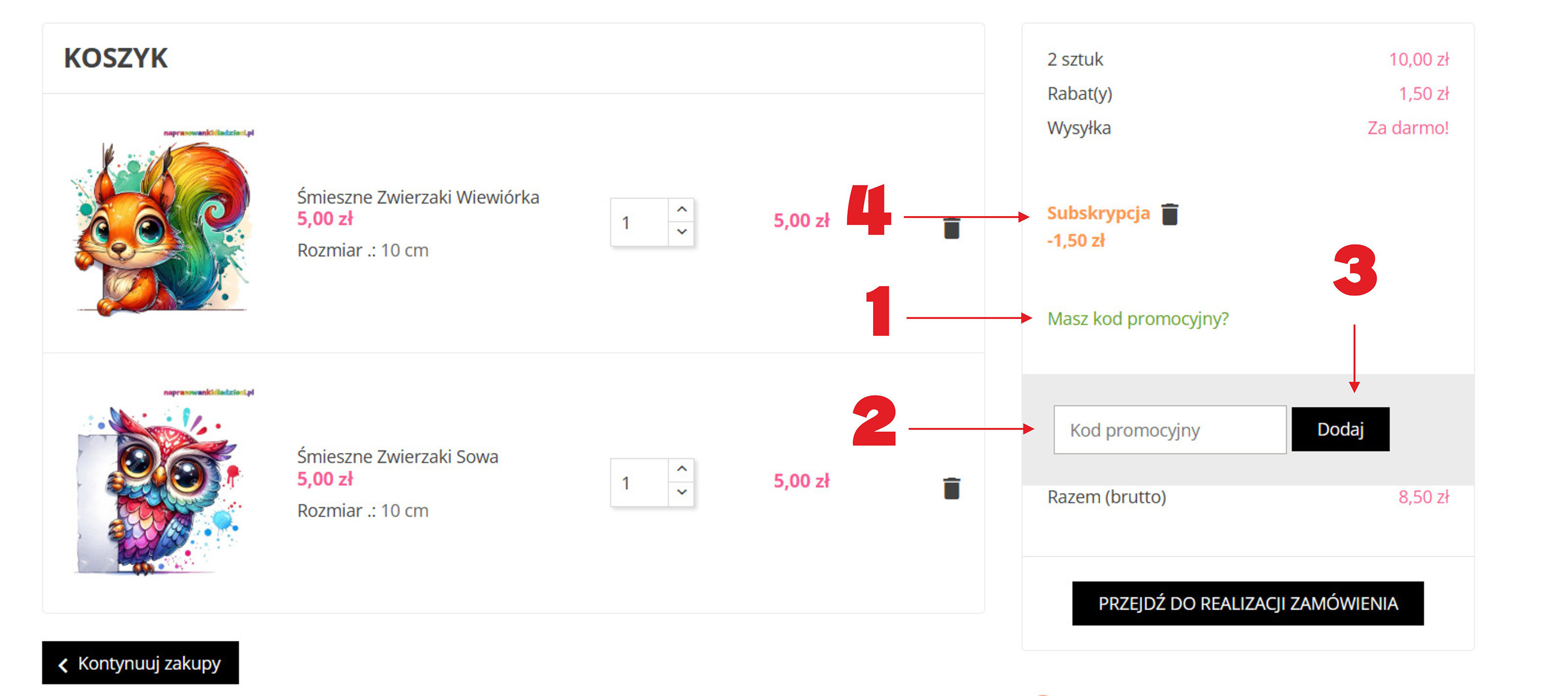 1. Nacisnąć pole MASZ KOD PROMOCYJNY- 2. Wpisz treść KODU RABATOWEGO